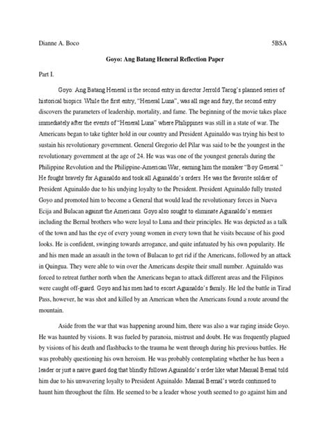 Sa mga sumusunod na talata, ipapahayag ko ang aking mga saloobin at repleksyon tungkol sa mga aral na natutunan ko mula sa Goyo. Mamamalas ko ang kahalagahan ng pagiging matapang, ngunit may kasamaang kabutihan nito. Ipapakita ko rin kung paano ito nakaimpluwensya sa aking pananaw sa pagiging isang mamamayang Pilipino. Isang malalim at mapananaliksik na pagtalakay ang aking gagawin upang maipakita ang tunay na halaga ng ating kasaysayan at mga bayani.